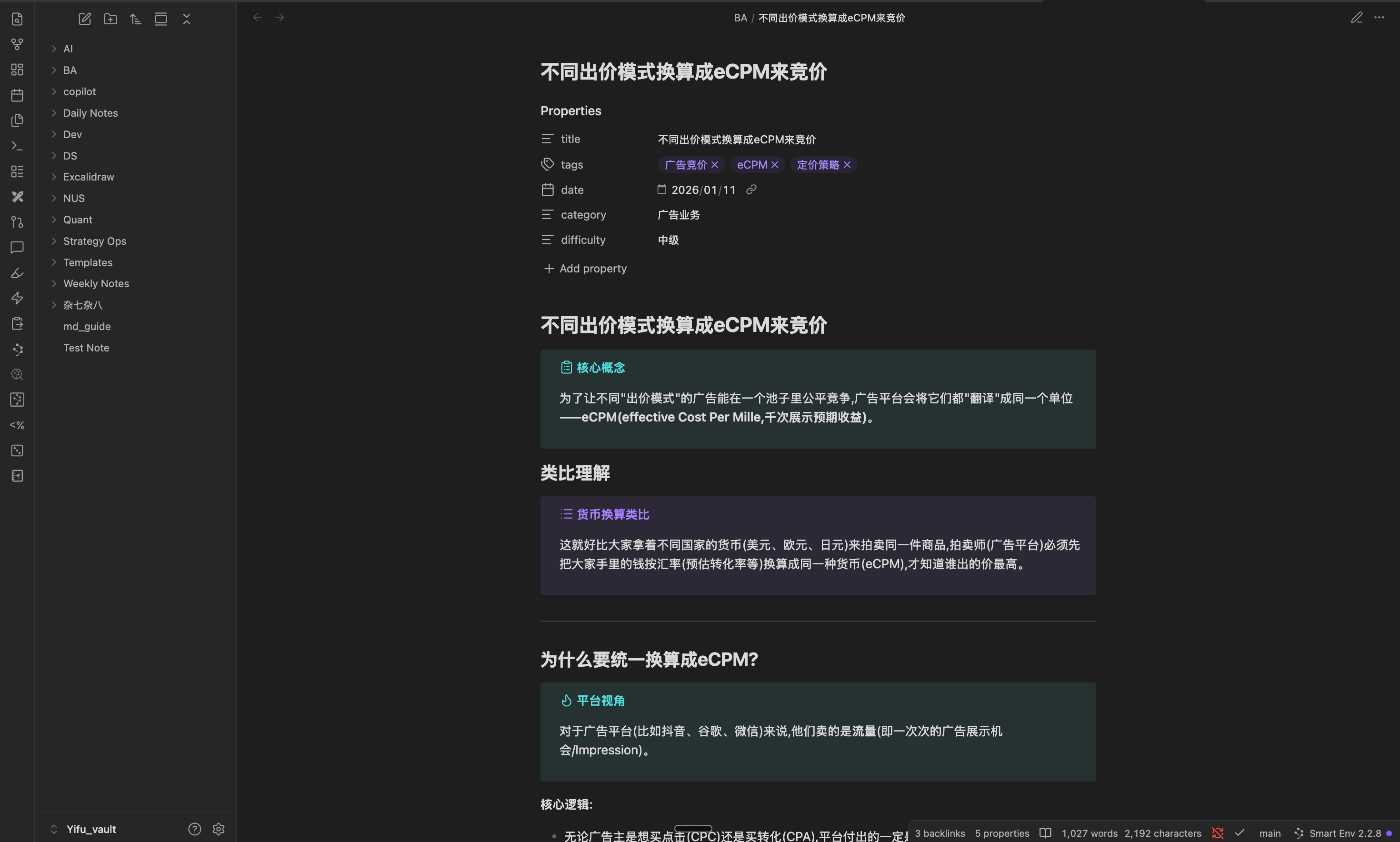 Next, I asked OpenCode to optimize some notes following the markdown guidelines in Obsidian Skills, making them more visually appealing.
